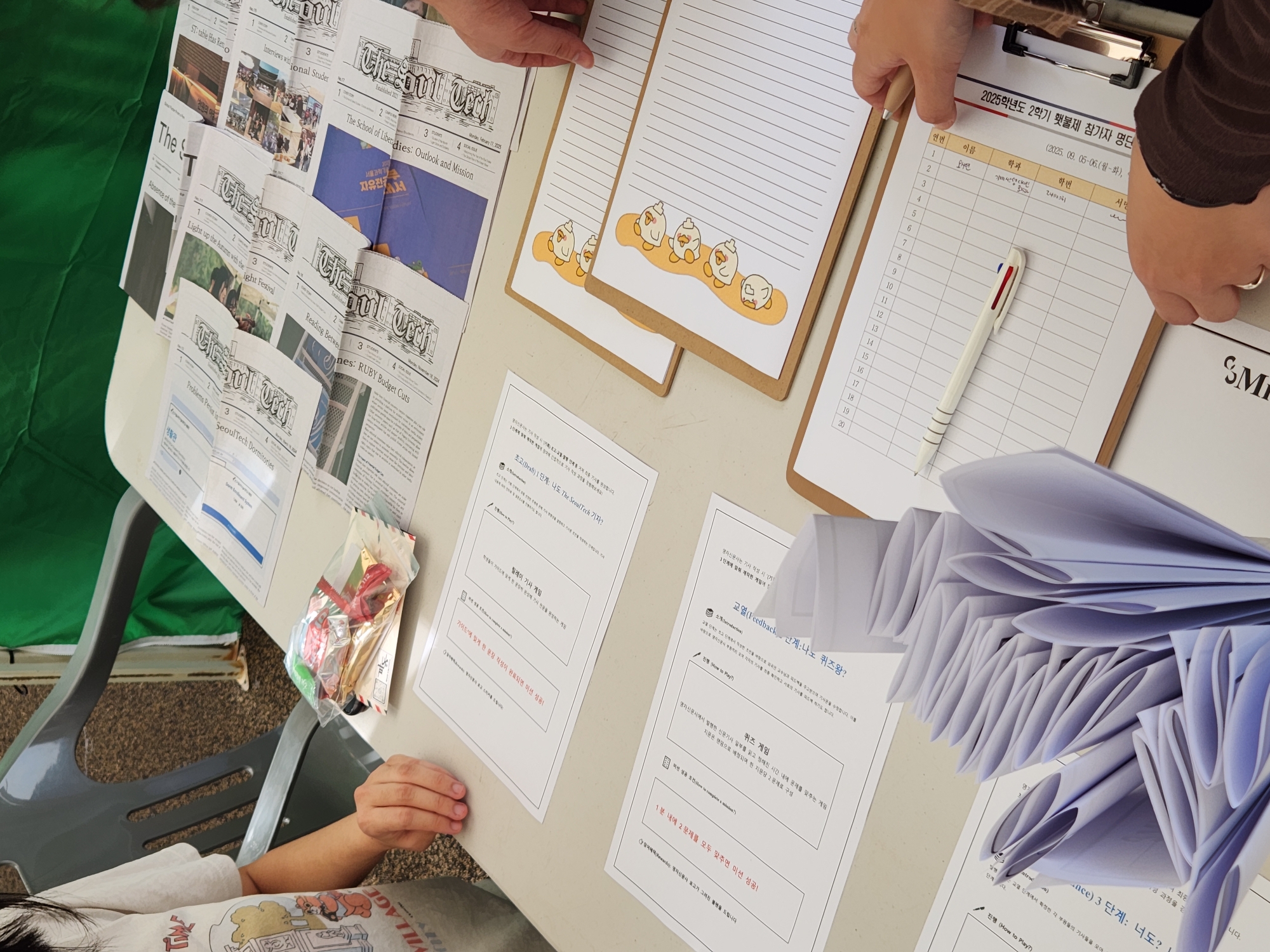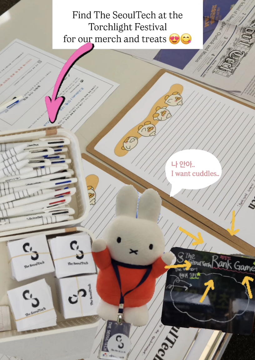 This year, The SeoulTech also hosted a booth including games and events. To let the readers know how a newspaper is issued, an activity where readers write their own articles in English was held. Another activity allowed students to freely express their own comments on The SeoulTech using keywords they randomly picked. Snacks were also given to those who follow The SeoulTech on Instagram.