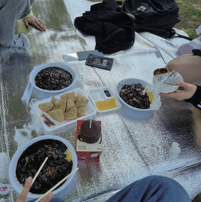One of SeoulTech’s most beloved spring traditions is the so-called “Bung-jja,” a combination of enjoying time at Boongeobang Pond and Jjajangmyeon. Students often bring their picnic mats to the large lawn next to Boongeobang Pond and order Jjajangmyeon to eat together while enjoying the warm weather. To order Jjajangmyeon, students can call Chinese restaurants directly or use food delivery appssuch as Baedal Minjok and Yogiyo. Friends, couples, club members, and even groups of first-year students all gather together for a casual picnic. Students usually enjoy Bung-jja during lunch or during their gaps between classes. It provides a wonderful opportunity to enjoy the cherry blossoms around Boongeobang Pond while soaking up the warm spring sunshine.
