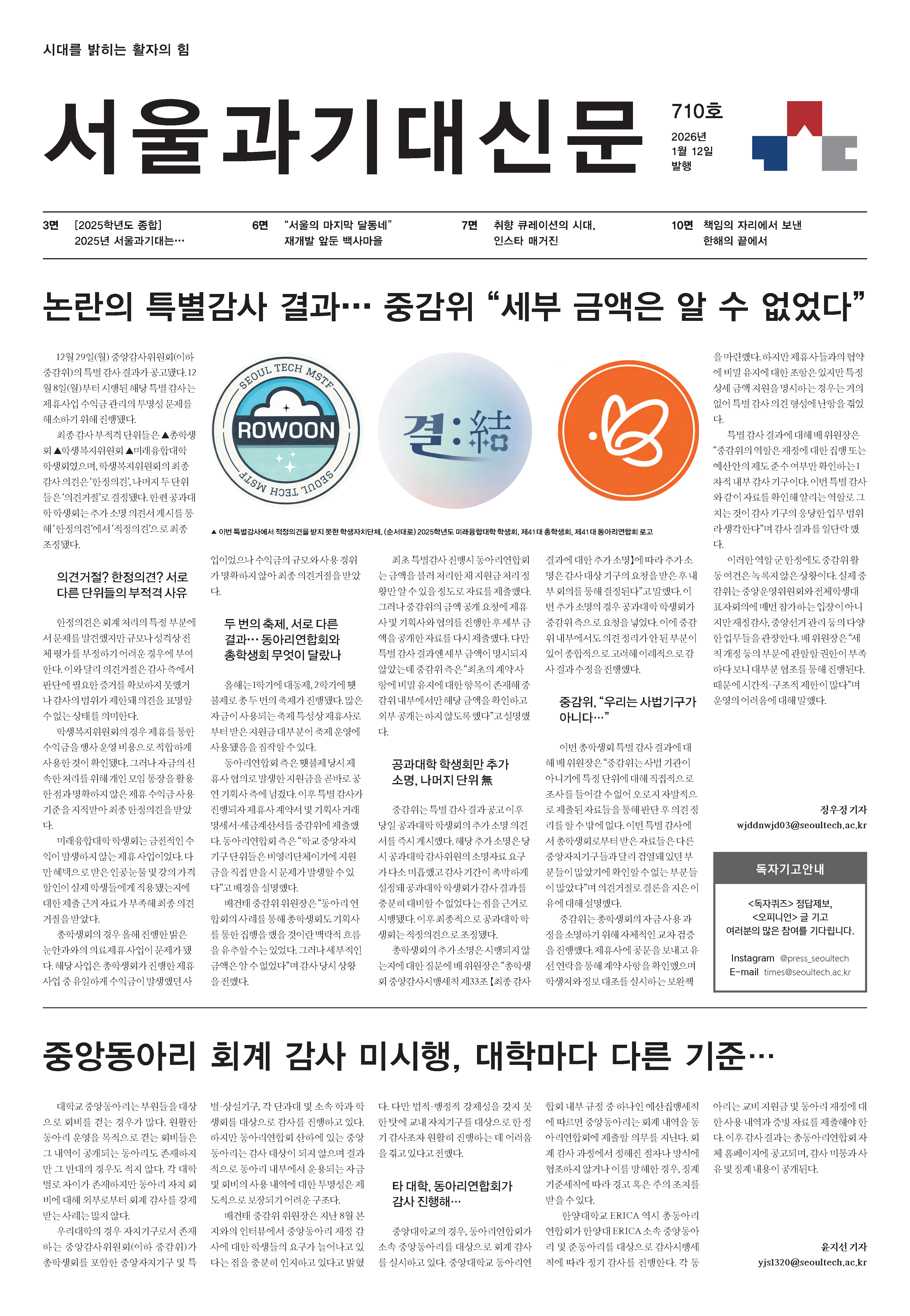 [01811] 서울시 노원구 공릉로 232 서울과학기술대학교 I 최초발행일 1963.11.25 I 발행인: 김동환 I 편집장: 김민수