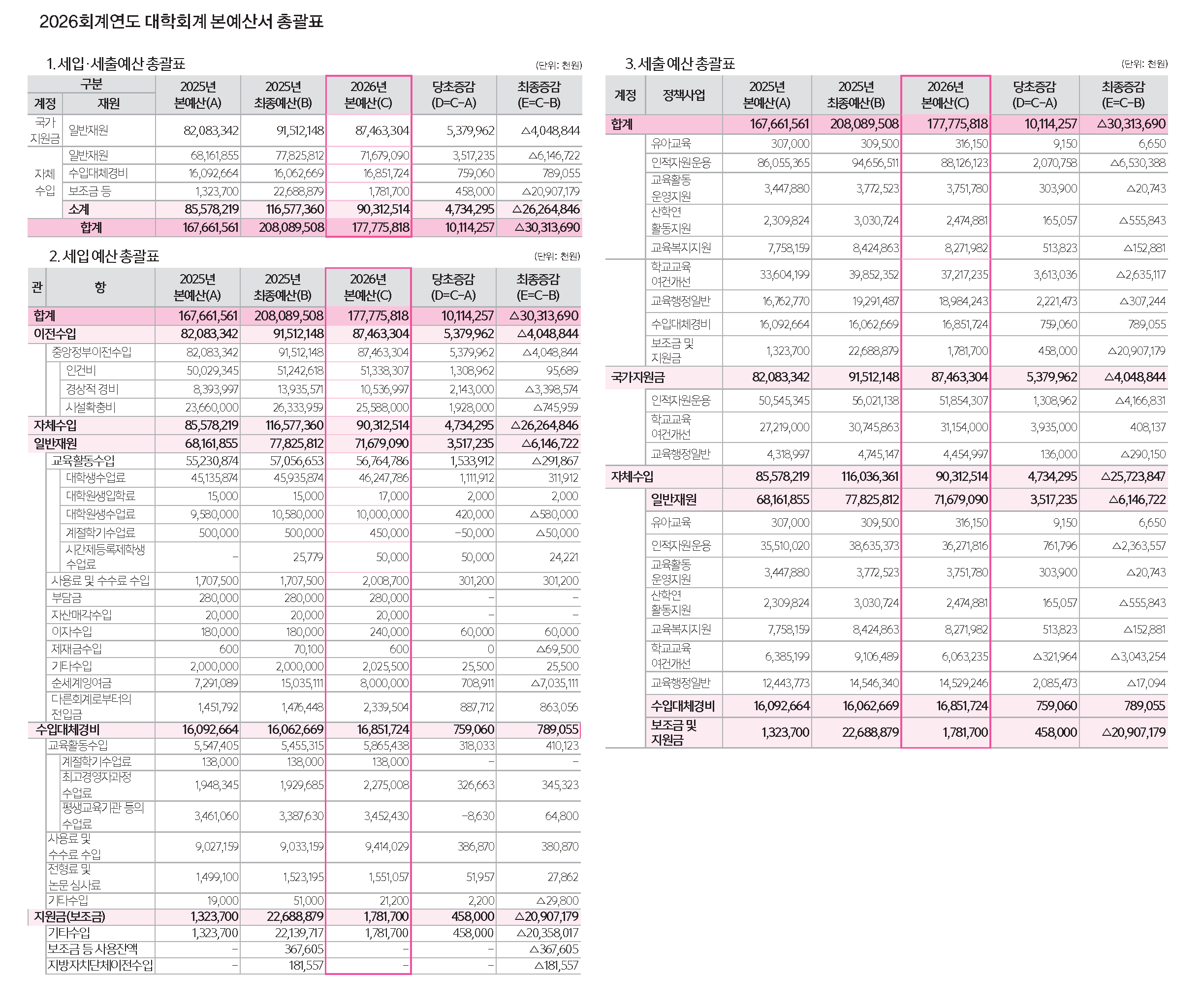 2026회계연도 대학회계 본예산서 총괄표2026.03.08 711호