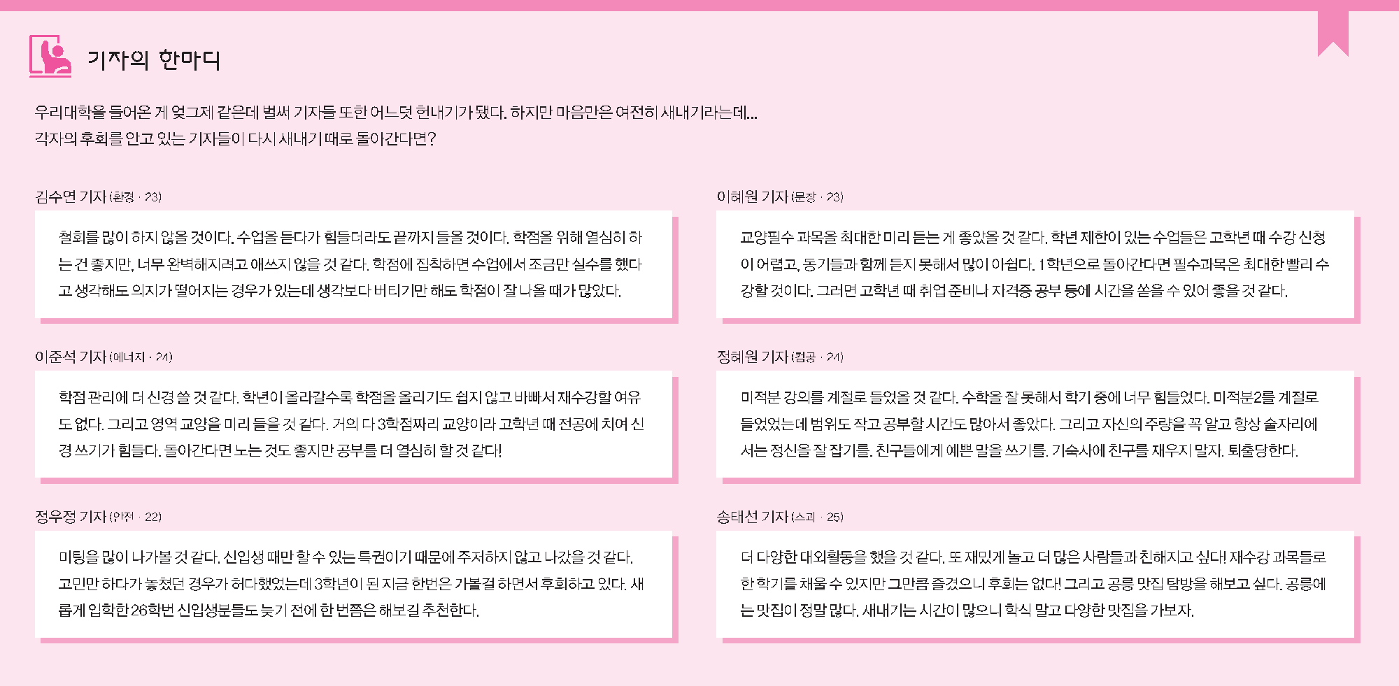 기자의 한마디_기자들이 새내기 때로 돌아간다면?