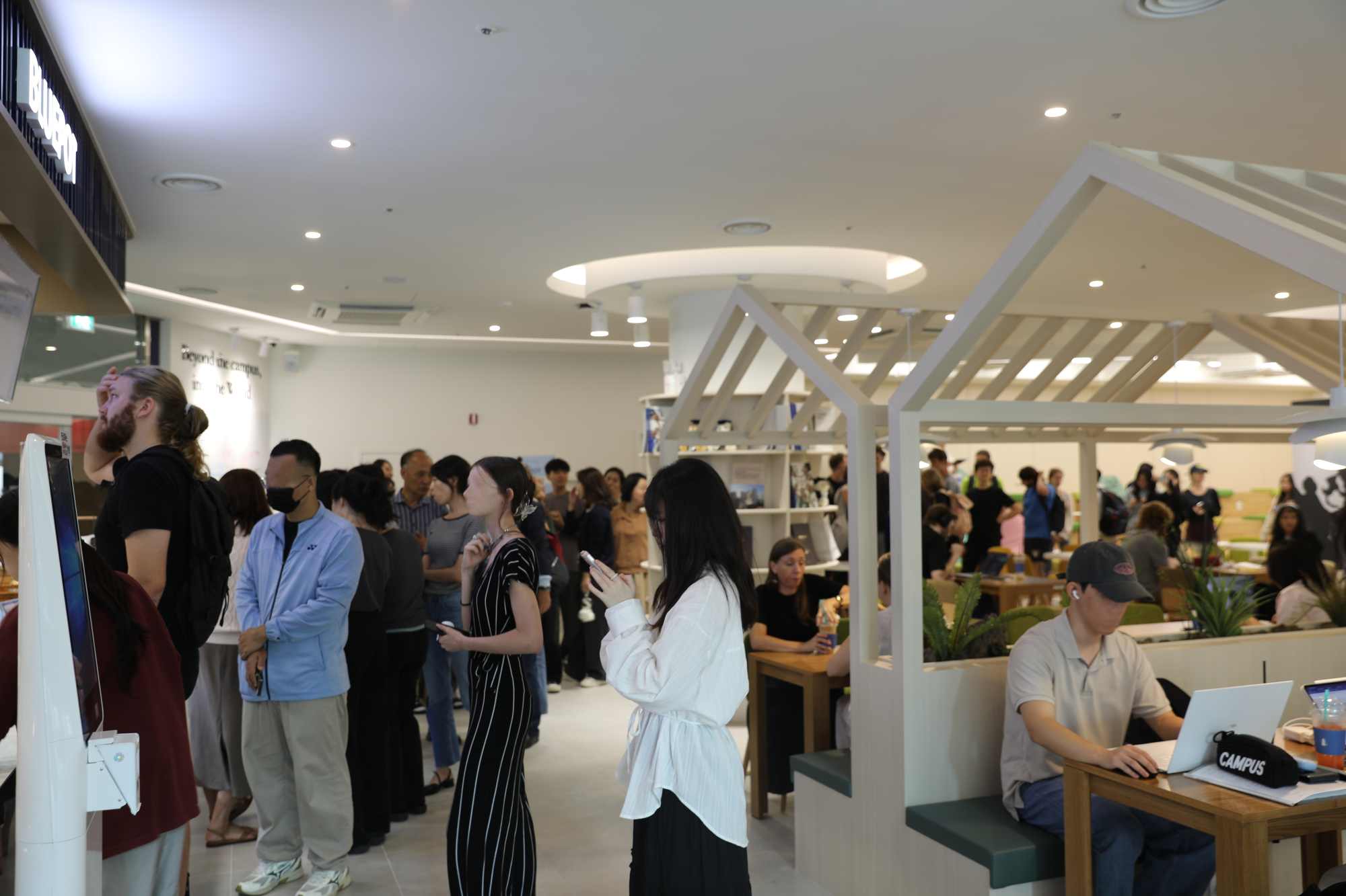 ▲ 글로벌라운지 개관 첫 날, 학생들이 블루포트를 이용하기 위해 줄 서 있다.