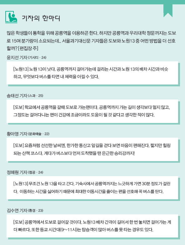 기자의 한마디_공릉역까지.. 도보? 노원13?