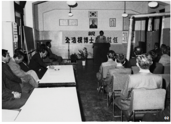 ▲1983년 4월 1일 당시 대학본부(현 다산관)에서 개최된 김호근 박사의 총장 취임식