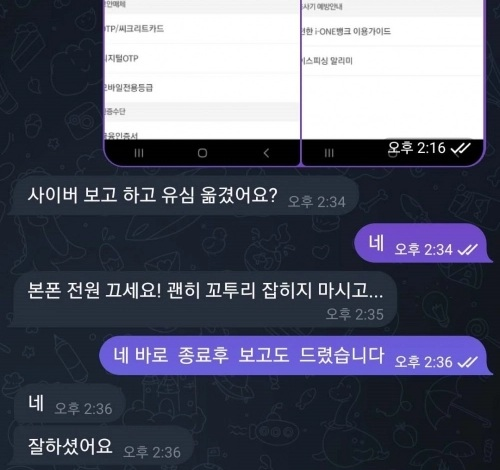 ▲ 실제 피해자가 보이스피싱범과 나눈 텔레그램 대화 (출처=전북경찰청)