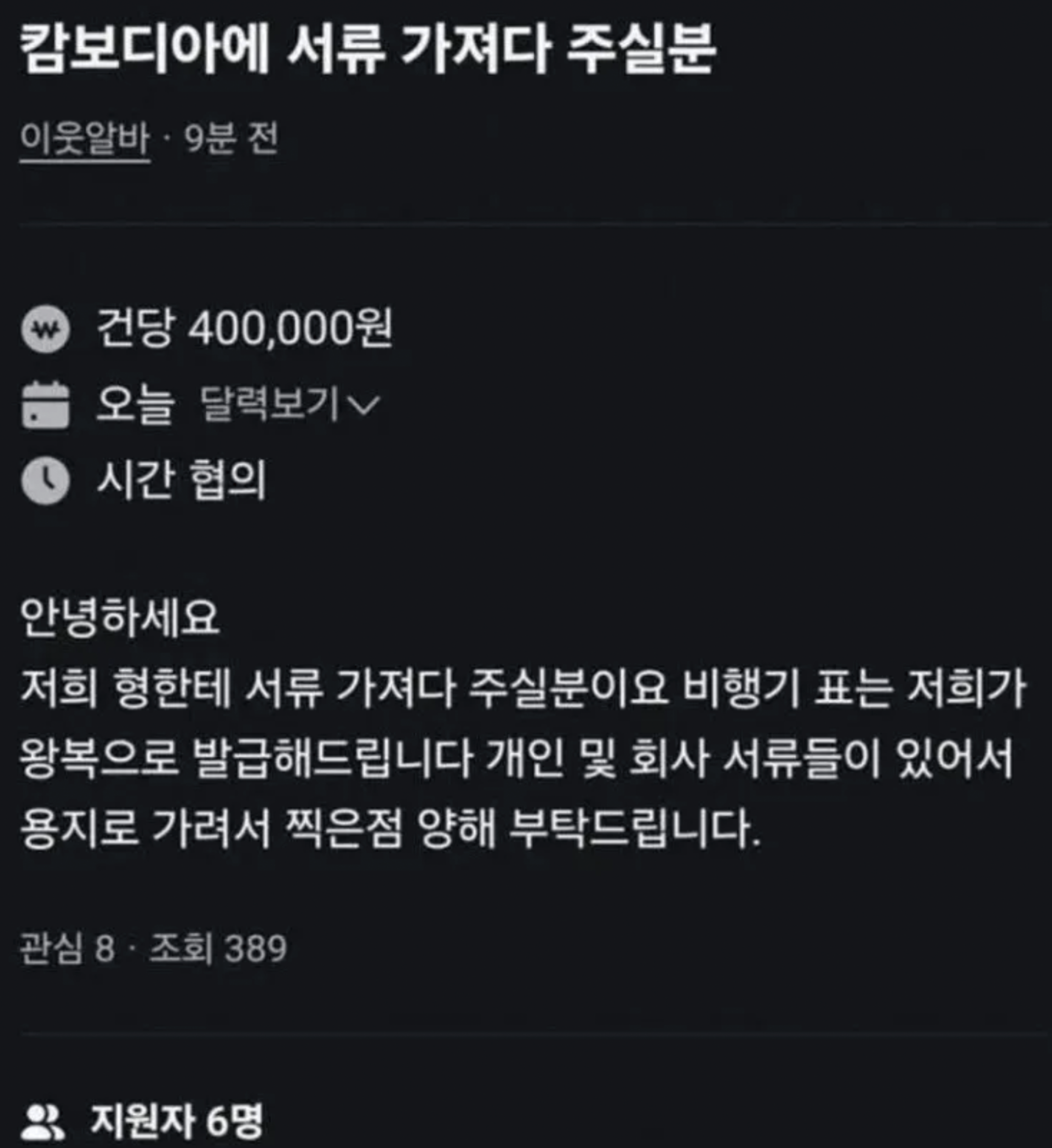 ▲ 온라인 중고거래 플랫폼 당근마켓에 올라온 글. 9분 만에 6명이 지원했다. (출처=한겨레)