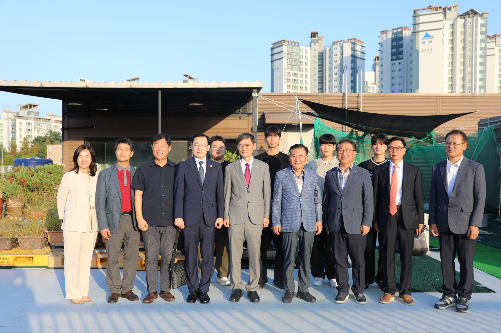 지난 9월 29일(월) 김동환 총장(이하 김 총장)을 비롯한 ▲박경종 총동문회 회장 ▲채성용 총동문회 사무총장 ▲조찬형 ㈜삼진일렉스 사장 ▲김대진 ㈜동현이앤아이 대표이사 ▲유경하 정부조달기술진흥협회 부회장 ▲김종국 기계기술인회장 등 주요 인사가 우리대학 동문 기업 ㈜에어비전을 방문했다. ㈜에어비전에서 진행된 이번 방문은 우리대학과 동문 기업 간의 소통을 강화하기 위해 기획됐다.